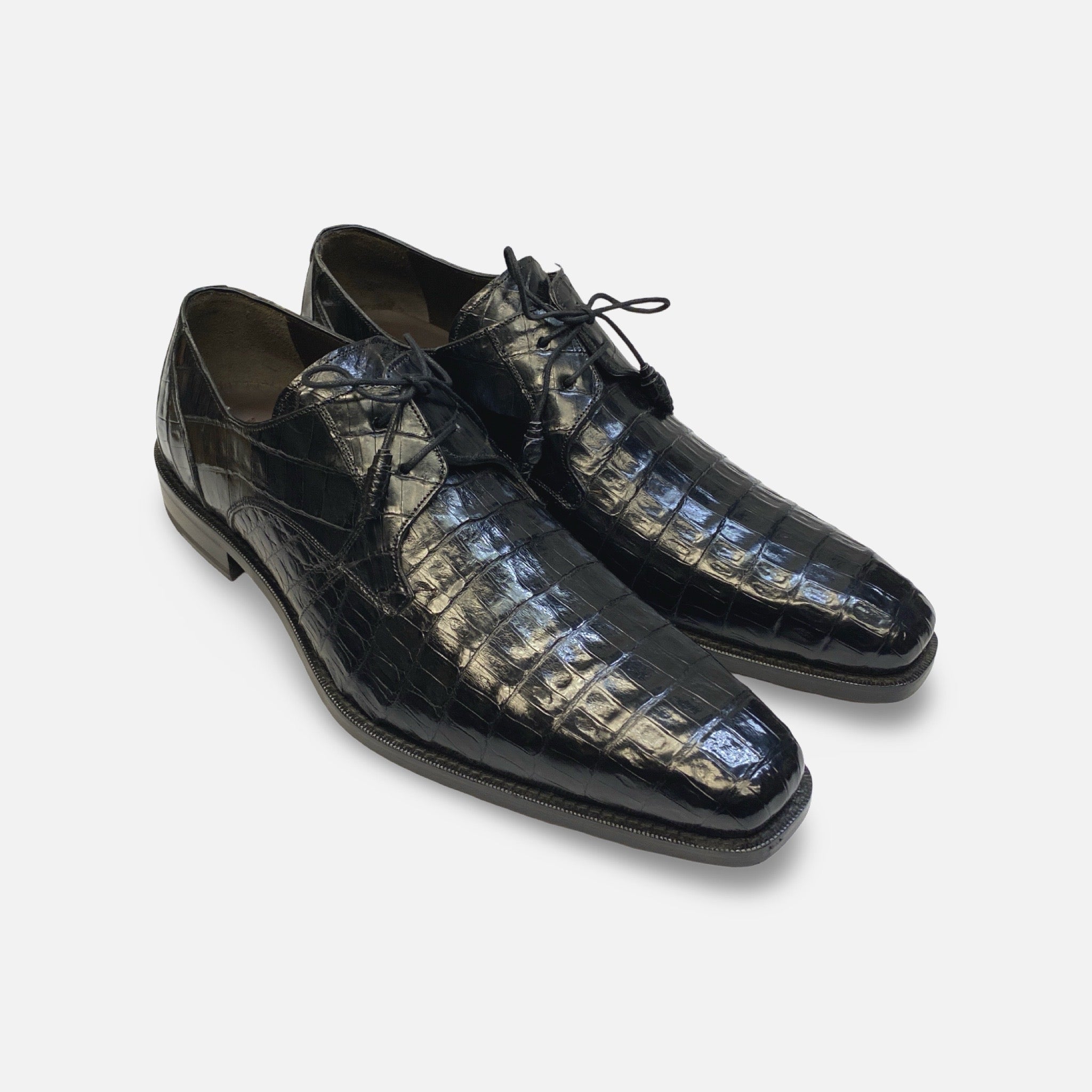 Mens Lace up Genuine Crocodile shoe by Mezlan. Expertly crafted in Spain, these men's lace up shoes are created with genuine crocodile leather, providing a luxurious and stylish option for the fashion-forward professional.