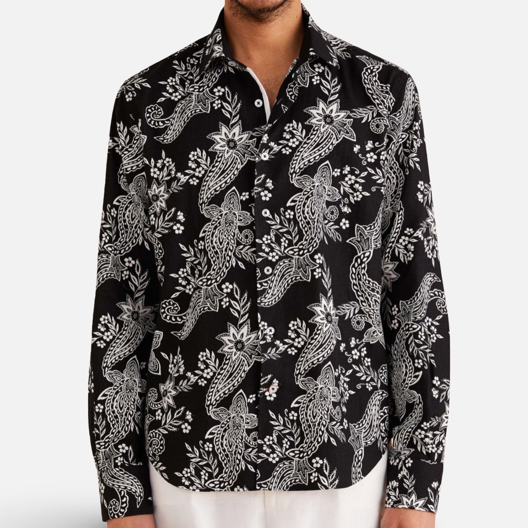 Inserch Black & White Floral Paisley Long Sleeve Shirt – Linen Blend