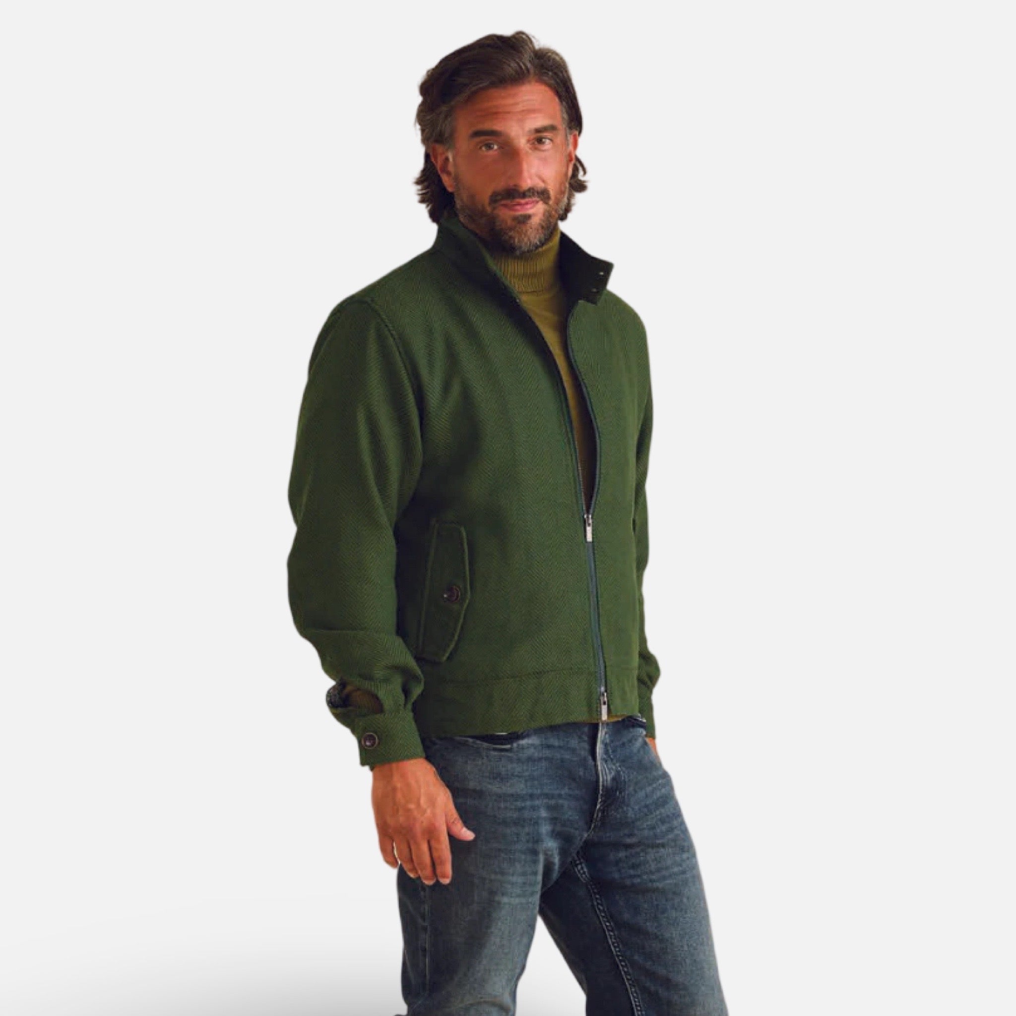 Add a refined touch to your casual wardrobe with this Olive Green Herringbone Lightweight Jacket, crafted from a durable and soft blend of 80% polyester and 20% wool. Featuring a sophisticated herringbone pattern and a modern stand-up collar, this jacket is perfect for layering during transitional weather or casual outings.