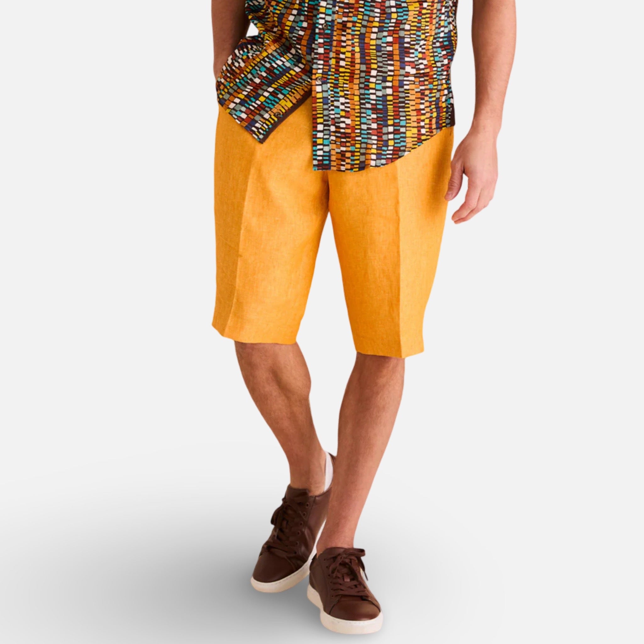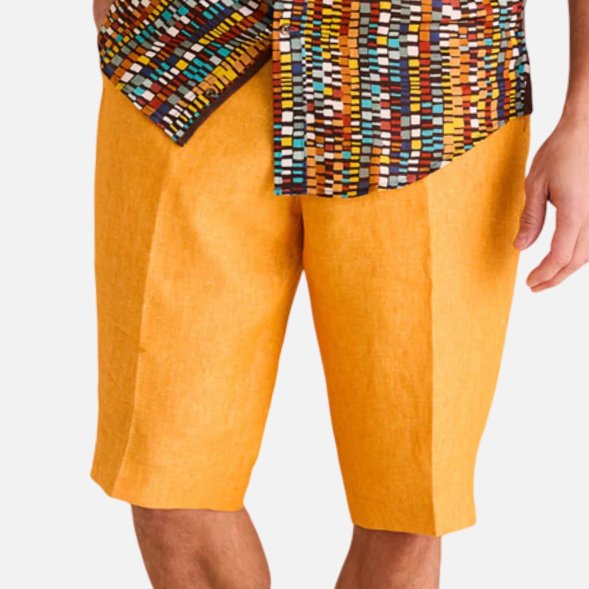 Mens Linen shorts by Inserch. Color Sunburst. 100% linen. Flat front. style P2116.