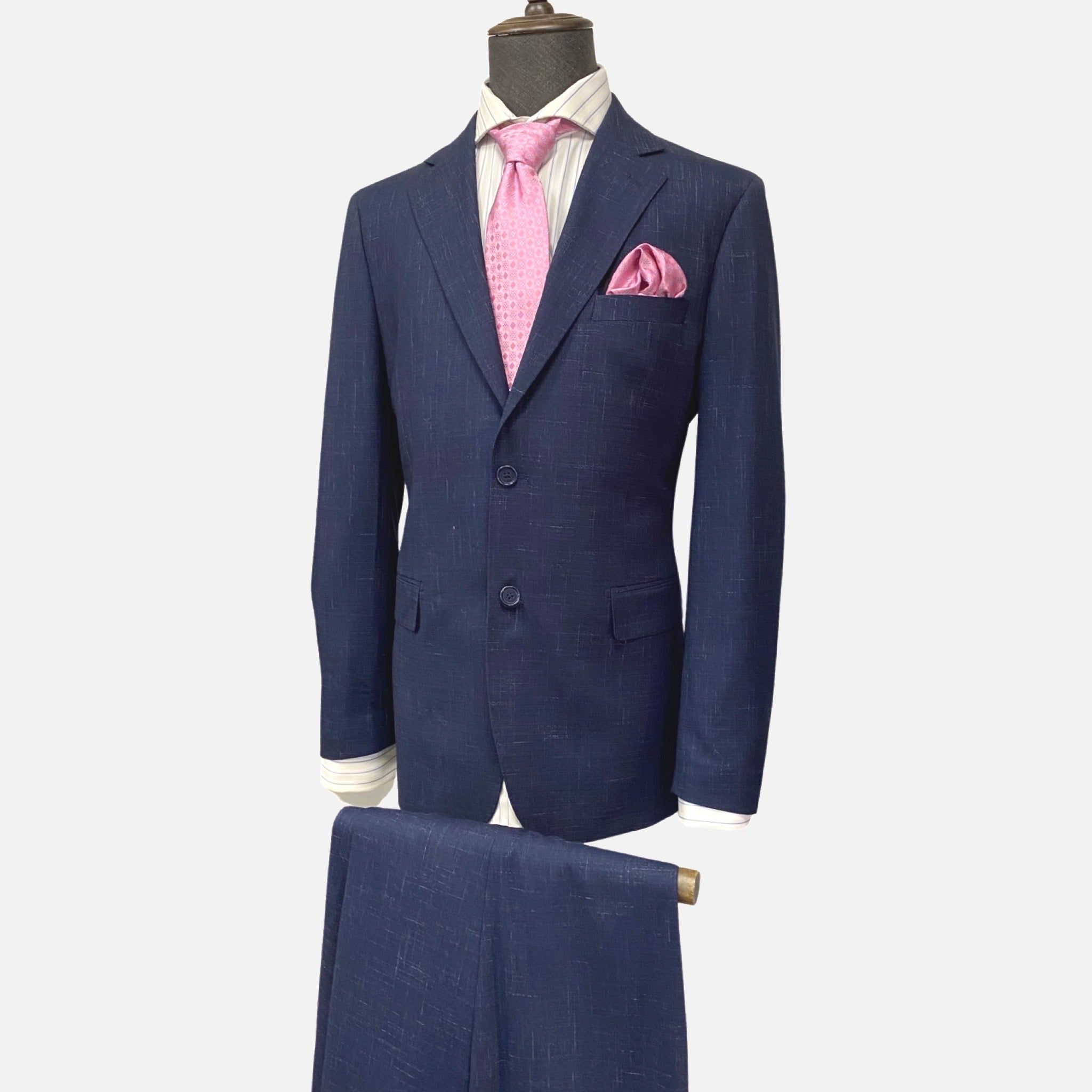 Crafted from a premium blend of 35% wool, 30% polyester, and 5% silk, this suit offers a luxurious feel and a refined look. The wool component provides warmth and durability, while the silk infusion adds a subtle sheen and enhances the suit's overall elegance. With its impeccable tailoring and attention to detail, our blue suit ensures a polished and distinguished appearance.