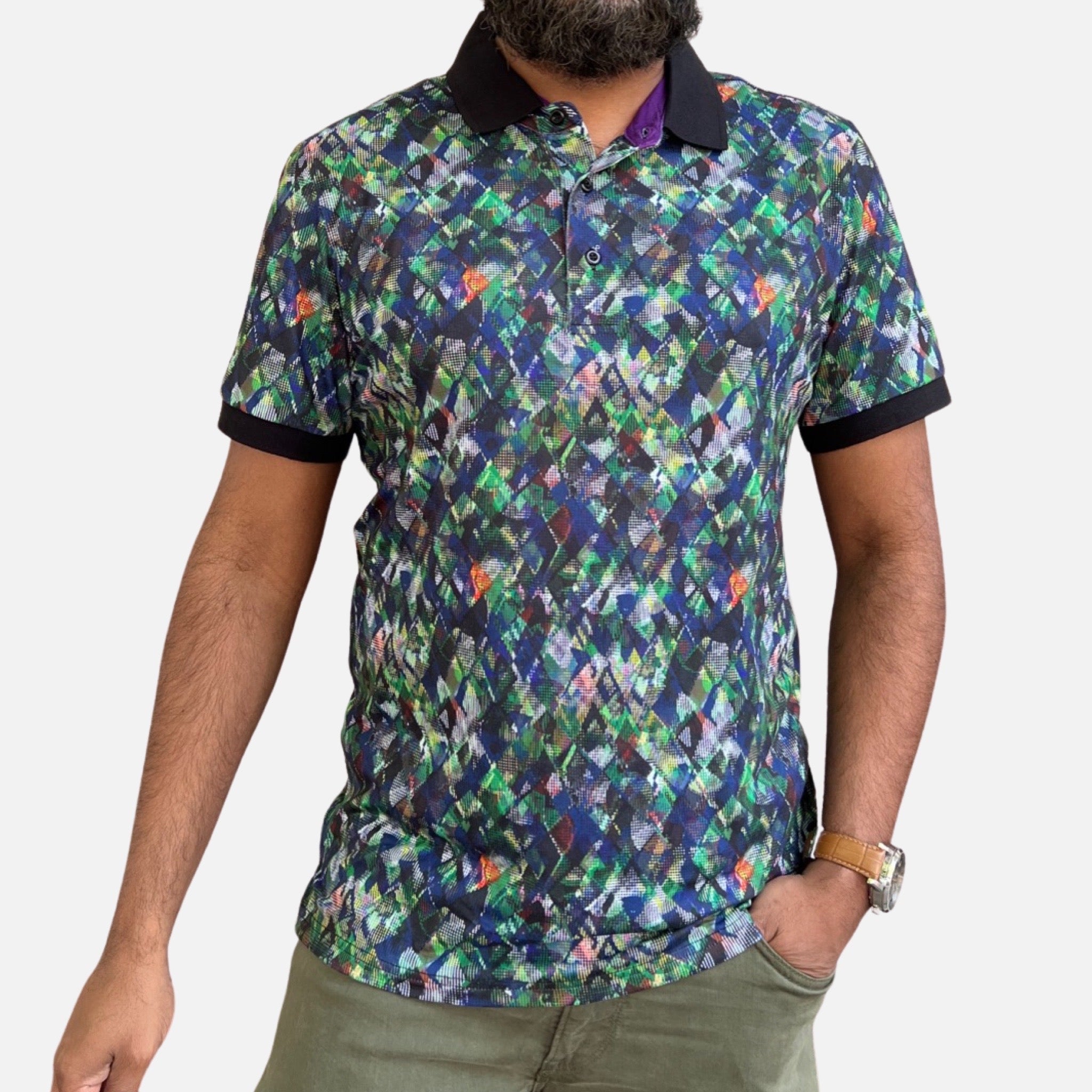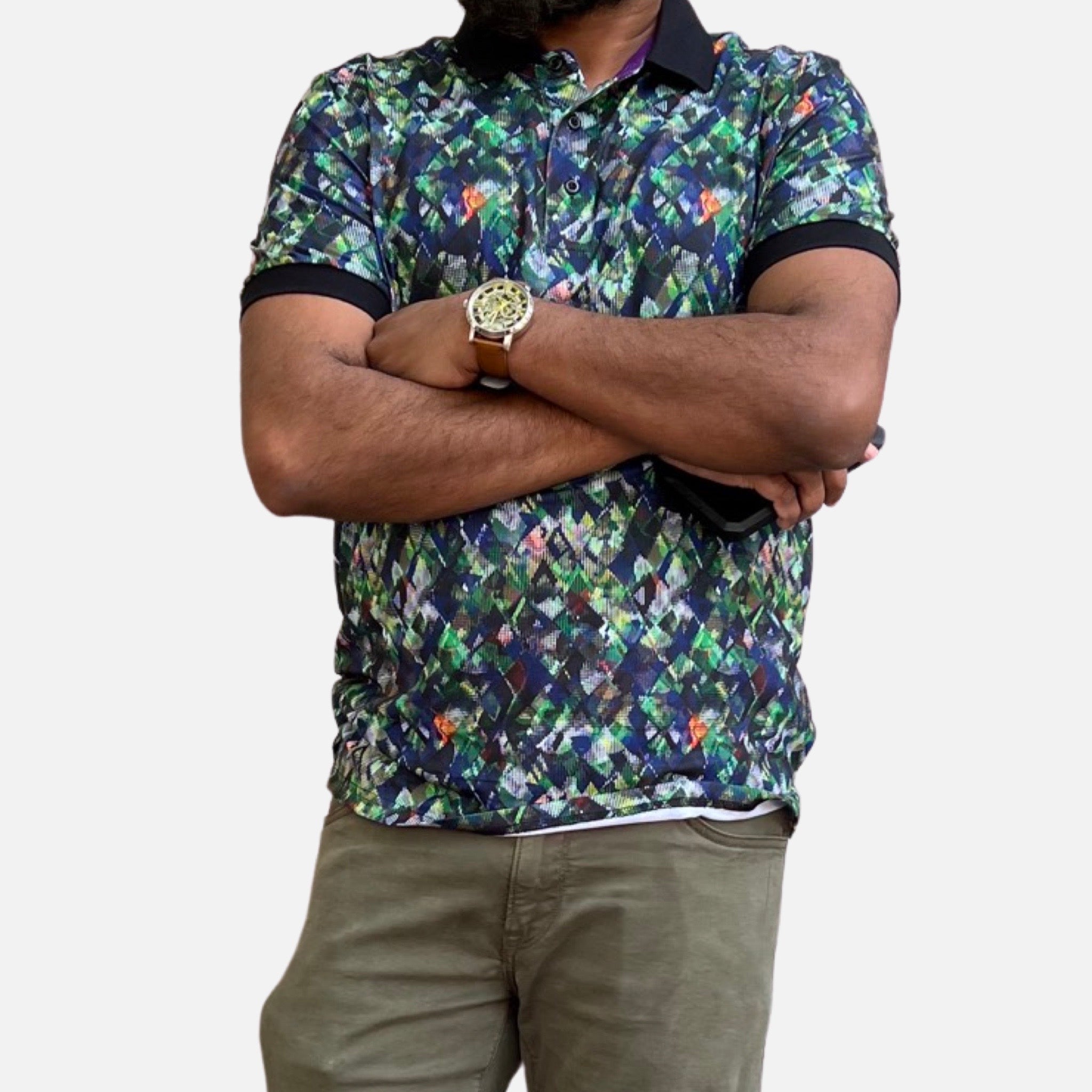 This mens green polo collar shirt is casual, and sporty. Easy to pair with your jeans, golf pants, or shorts. Has stretch fabrication for comfortability.