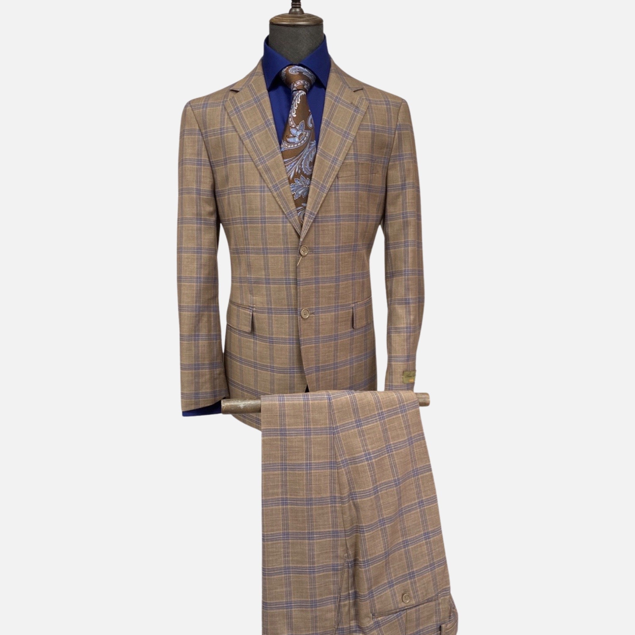 Brown Suit | Windowpane/plaid | Wool and Silk Blended.
